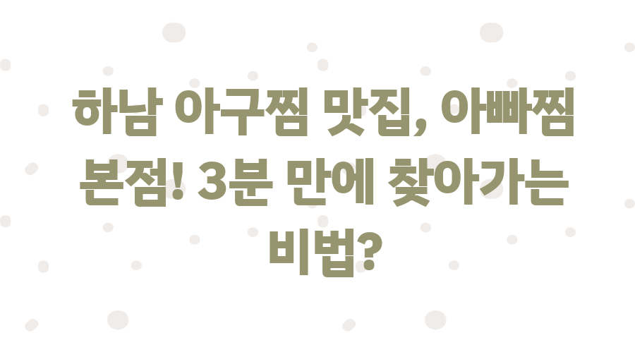 하남에서 아구찜 맛집을 찾는 당신, 제대로 찾아오셨습니다! 오늘 소개할 곳은 하남 시민들의 입맛을 사로잡은 **"아빠찜 본점"**입니다.